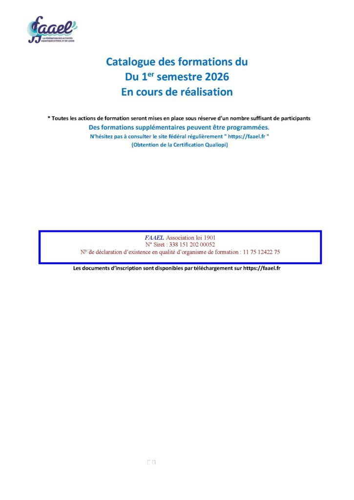 La Fédération des Activités Aquatiques d’Eveil et de Loisir est un organisme de formation référencé